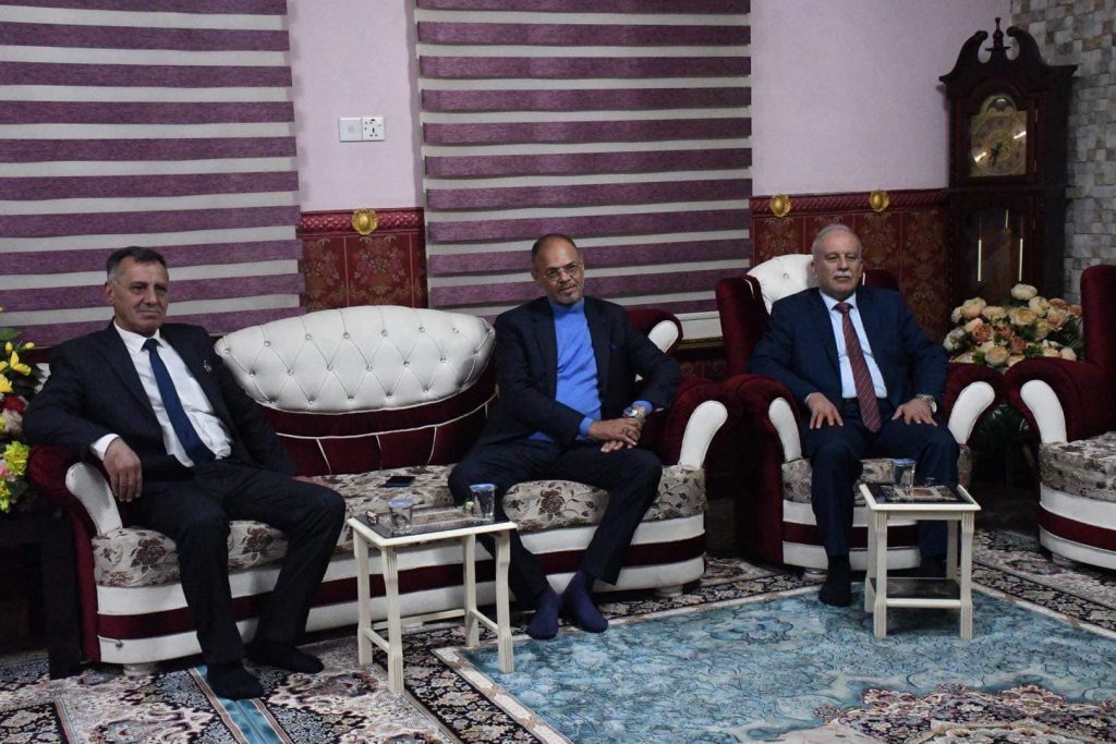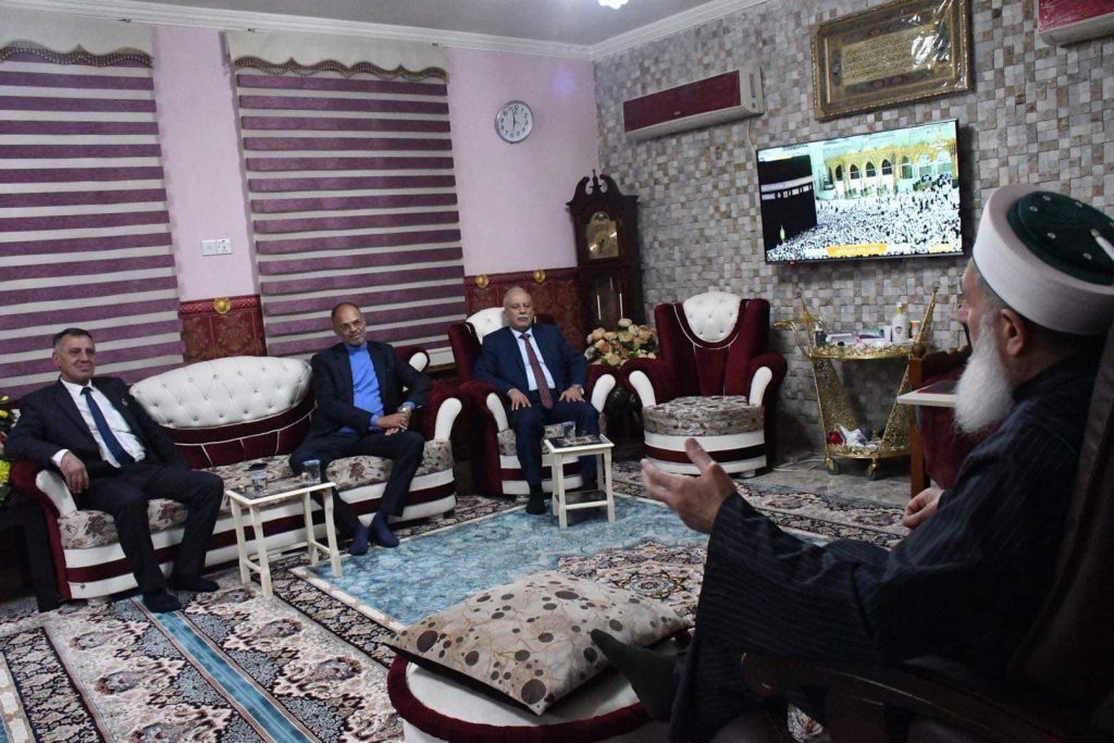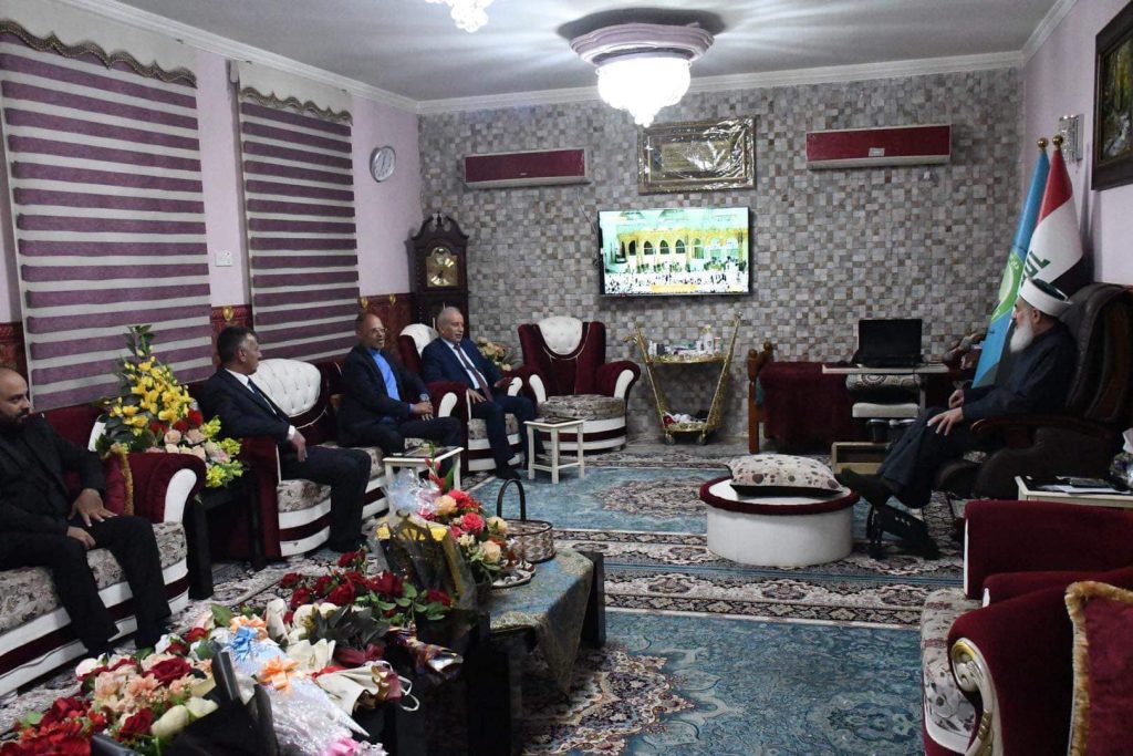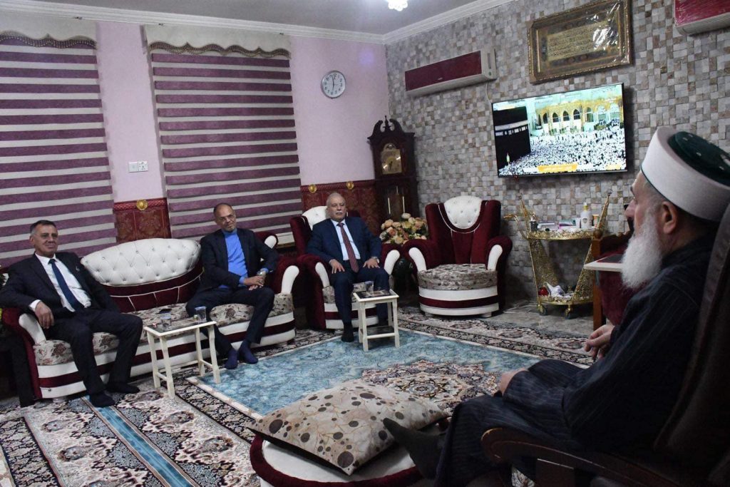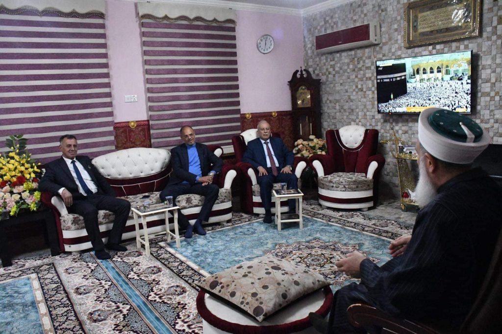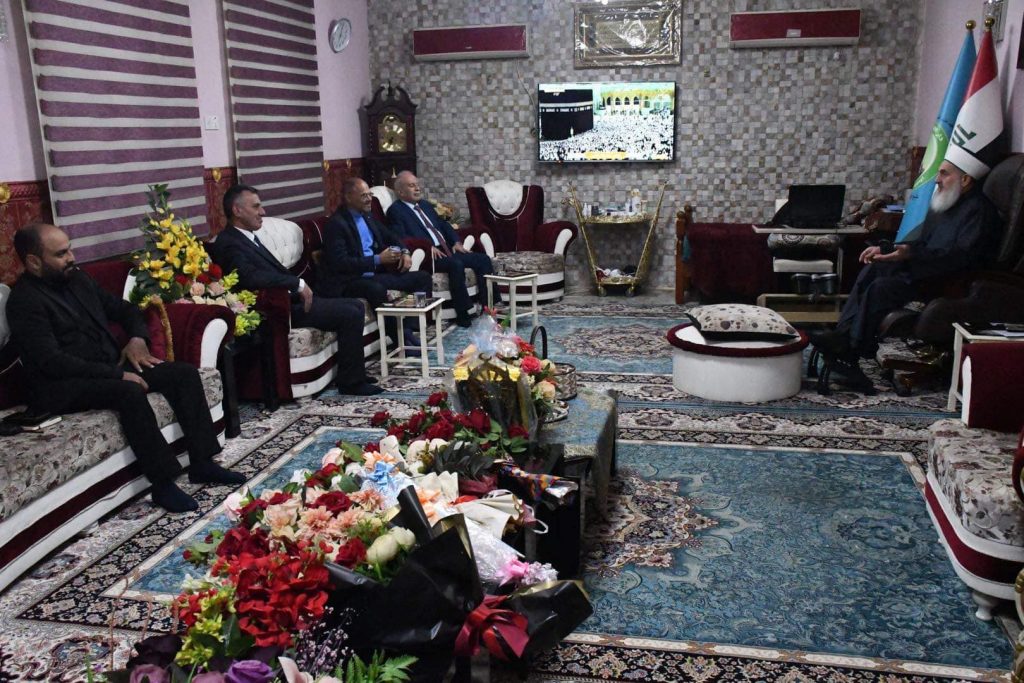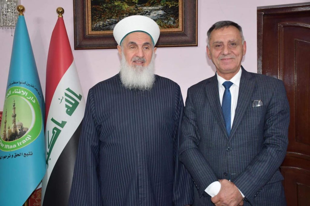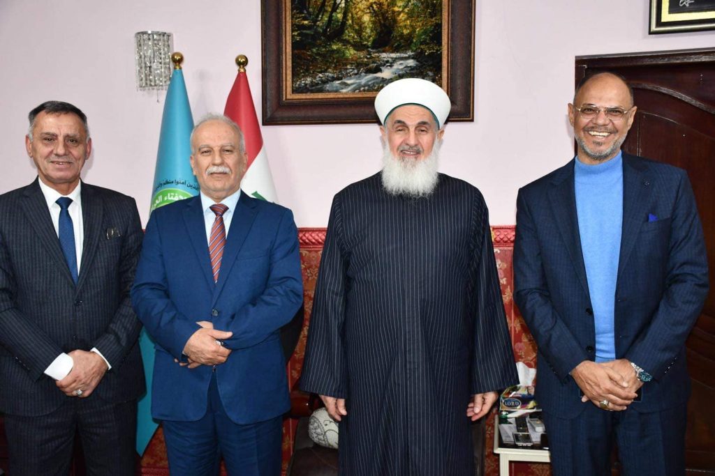 التقى سماحة مفتي جمهورية العراق الشيخ الدكتور مهدي بن احمد الصميدعي” رعاه الله تعالى” في محل اقامته ببغداد وفد برئاسة الدكتور احمد المشهداني امين عام حزب الايثار وتألف الوفد من الدكتور سعد الجبوري امين عام كتلة دعم الدولة والاستاذ طالب السعدي وكانت الزيارة للسلام والاطمئنانعلى صحة وسلامة سماحة المفتي كما ودار الحديث حول اخر المستجدات على الساحة العراقية وما يأول اليه الوضع السياسي في العراق ومدى التأثيرات القادمة ، هذا واشاد الوفد بمواقف وحكمة سماحة المفتي مبينين مدى حرصهم على توجيهاته السديدة ، وفي الختام شكر الوفد سماحة المفتي على حسن الاستقبال متمنينمن الله العلي القدير ان يمن على الشعب العراقي الامن والاستقرار .