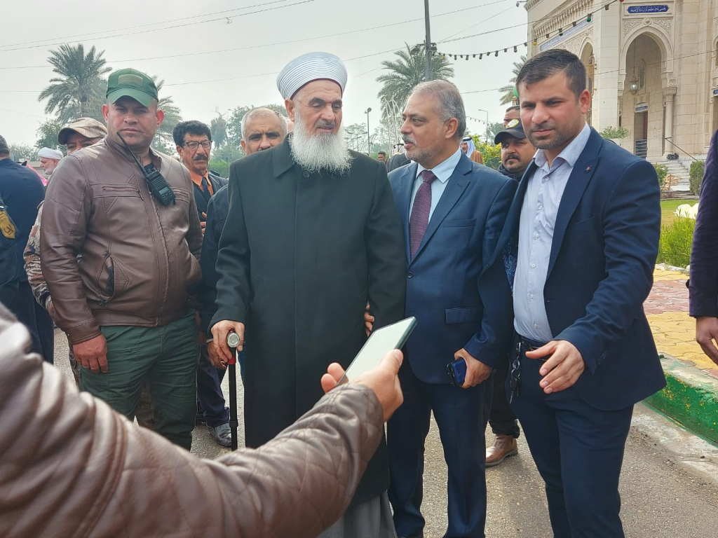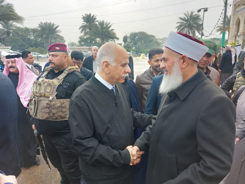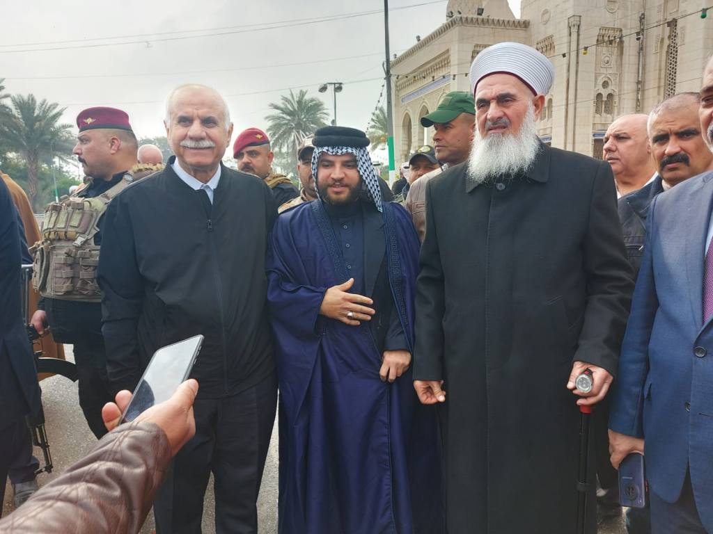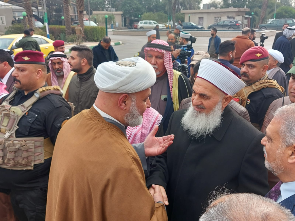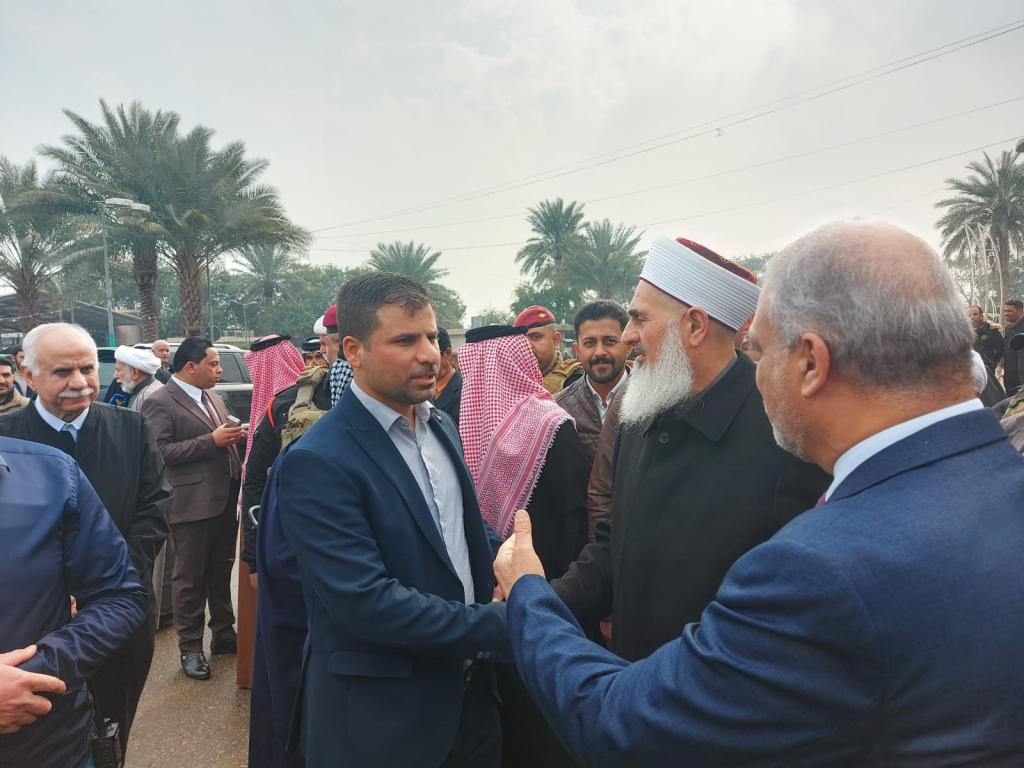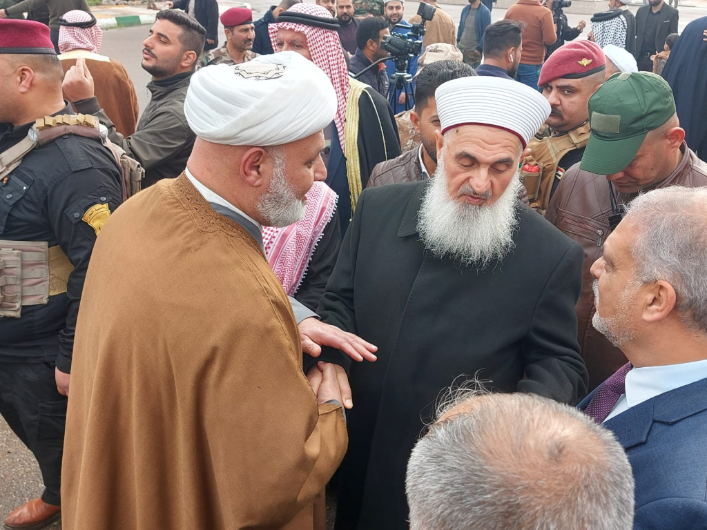 مفتي الجمهورية مع حشود من الشيوخ والوجهاء والنشامى يقفون وقفة جماعية تضامنية مع الشعب الفلسطيني .