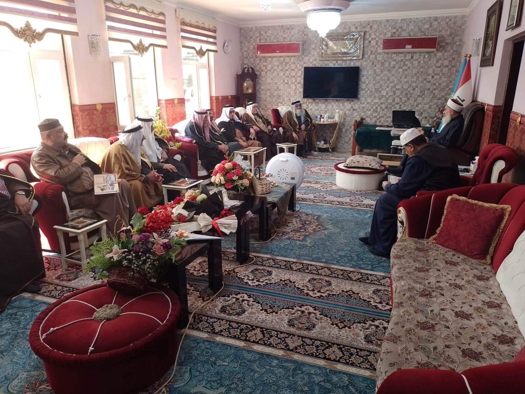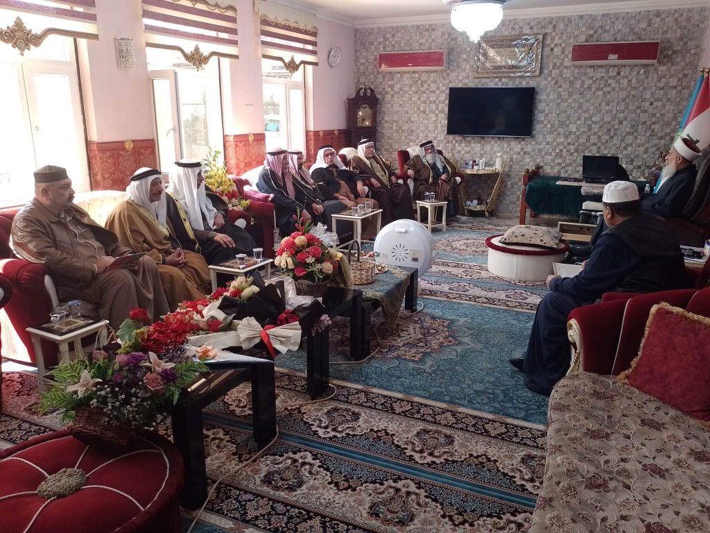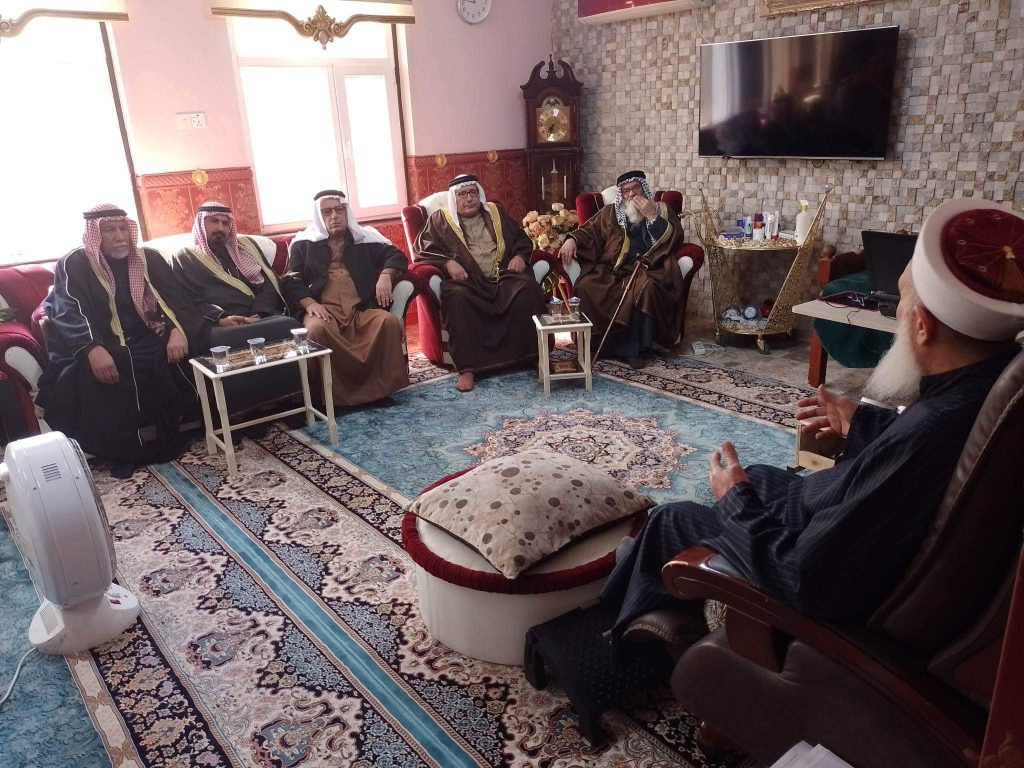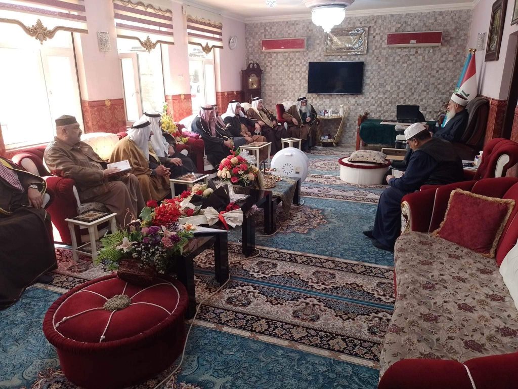 التقى سماحة مفتي الجمهورية الشيخ الدكتور مهدي بن احمد الصميدعي ” رعاه الله تعالى ” في محل اقامته ببغداد صباح اليوم السبت وفد لجنة الحكماء برئاسة الشيخ عيد العسافي رئيس اللجنة والشيخ حميد العرسان نائب الرئيس ، وكانت الزيارة دورية واطلاع سماحة المفتي على اخر المستجدات ومناقشة الامور المستقبلية وكيفية التقدم في اللجنة من اجل خدمة المجتمع العراقي والتركيز على اصدار قانون العفو العام ، مؤكدين دعمهم ومساندتهم لتوجيهات سماحة المفتي ، من جانبه شكر سماحته الوفد مؤكدا على العمل وتكريس الجهود لتذليل العقبات مباركا لهم عملهم داعيا الله ان يوفقهم جميعا لخدمة العراق .
