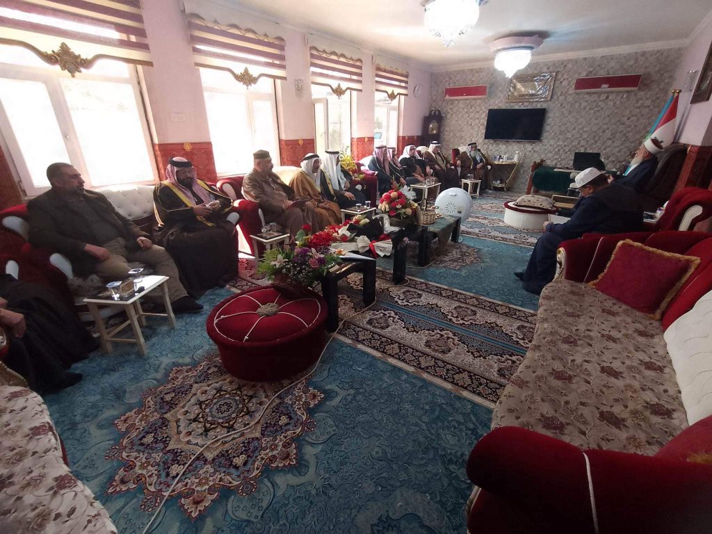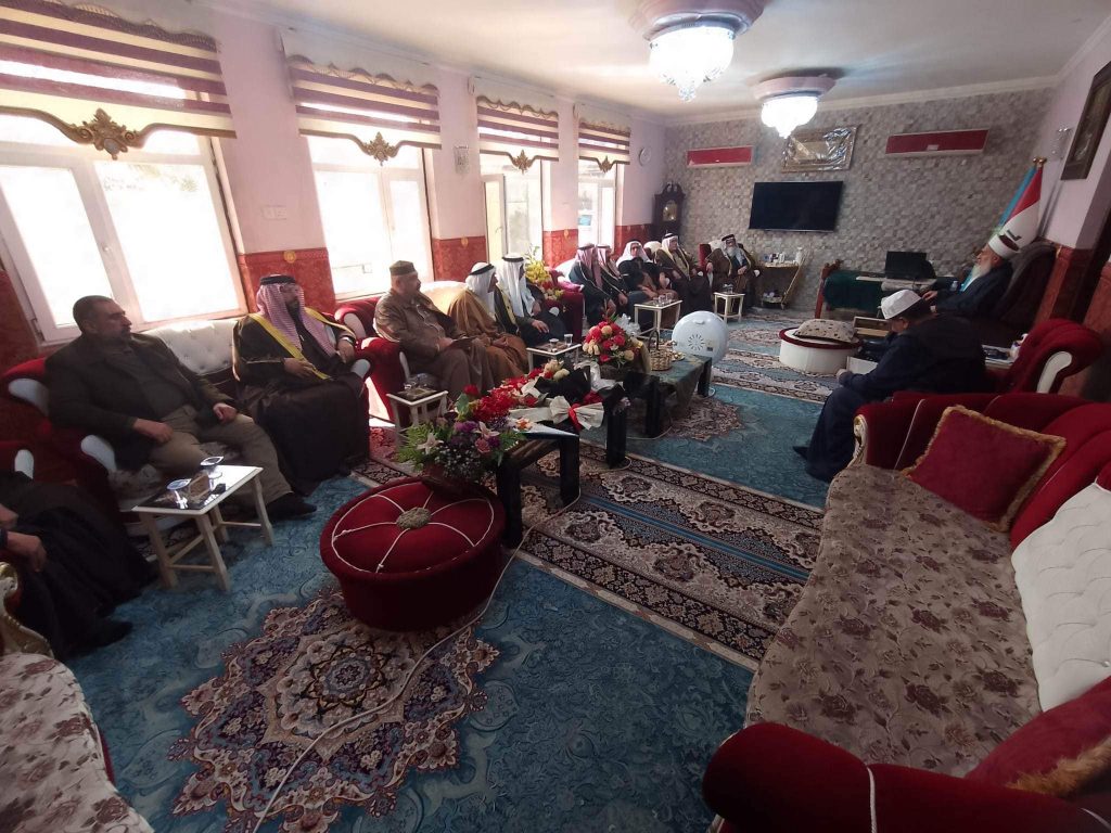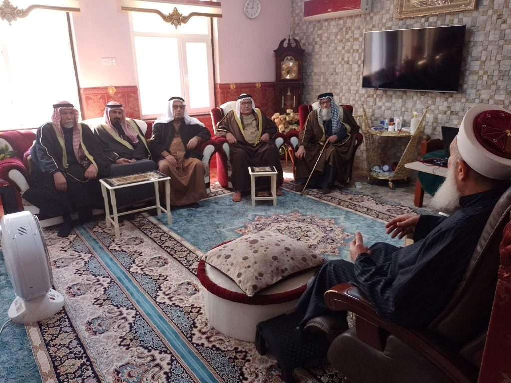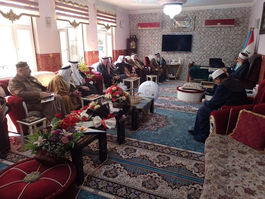 التقى سماحة مفتي الجمهورية الشيخ الدكتور مهدي بن احمد الصميدعي ” رعاه الله تعالى ” في محل اقامته ببغداد صباح اليوم السبت وفد لجنة الحكماء برئاسة الشيخ عيد العسافي رئيس اللجنة والشيخ حميد العرسان نائب الرئيس ، وكانت الزيارة دورية واطلاع سماحة المفتي على اخر المستجدات ومناقشة الامور المستقبلية وكيفية التقدم في اللجنة من اجل خدمة المجتمع العراقي والتركيز على اصدار قانون العفو العام ، مؤكدين دعمهم ومساندتهم لتوجيهات سماحة المفتي ، من جانبه شكر سماحته الوفد مؤكدا على العمل وتكريس الجهود لتذليل العقبات مباركا لهم عملهم داعيا الله ان يوفقهم جميعا لخدمة العراق .
