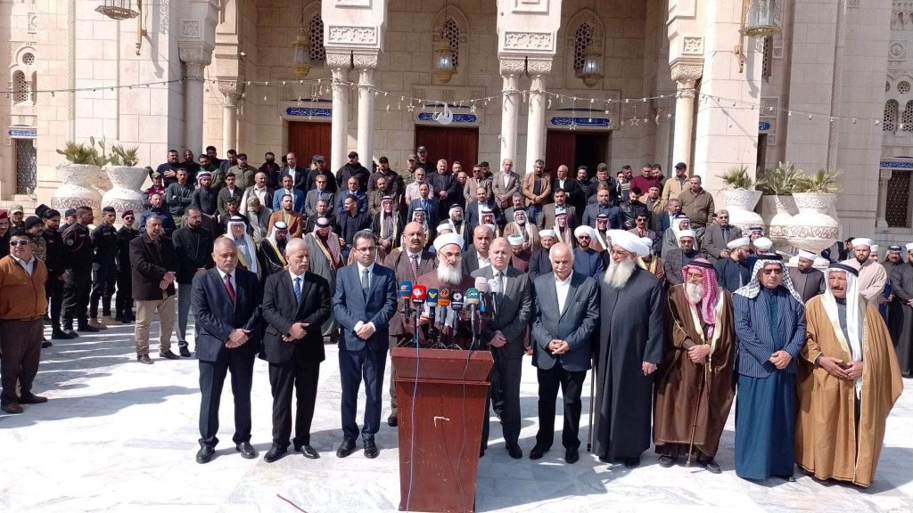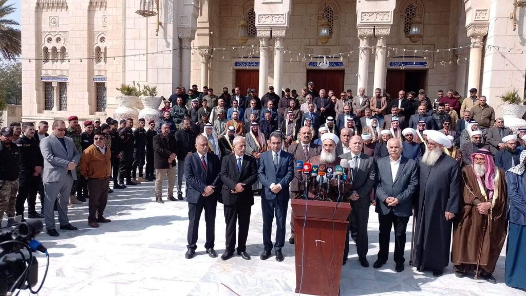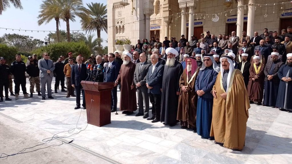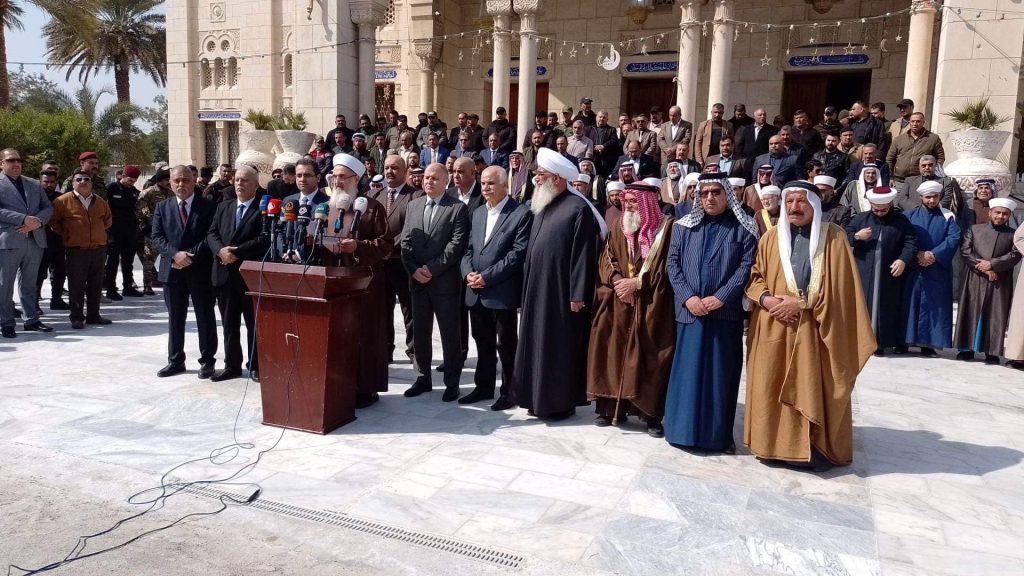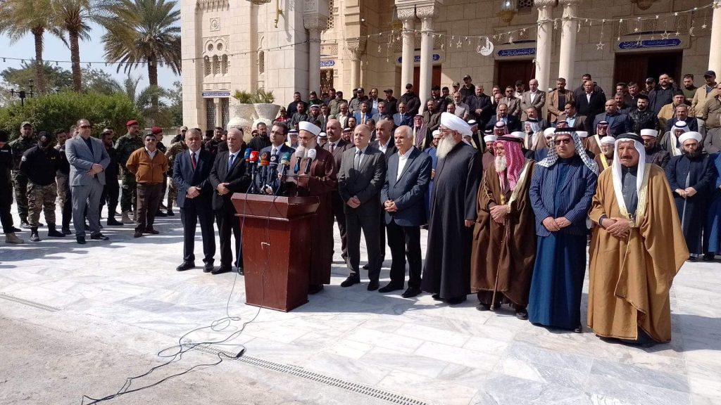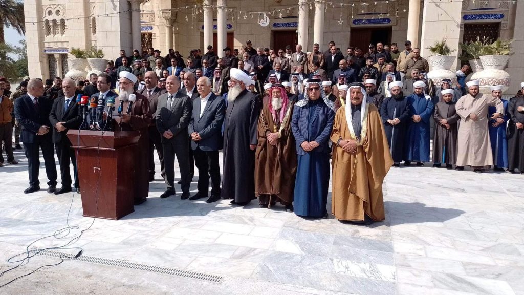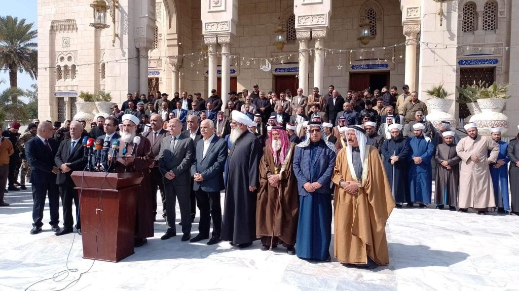 بحضور علماء ومشايخ وأئمة دار الافتاء في بغداد وممثل عن مكتب دار الافتاء في محافظة البصرة وممثل عن مكتب دار الافتاء في محافظة ديالى وممثل عن مكتب دار افتاء نينوى وممثل عن مكتب دار الافتاء في الفلوجة وممثل عن مكتب دار الافتاء في ابي غريب ، ورئيس وأعضاء لجنة الحكماء ومشاركة السفير الفلسطيني والقنصل اللبناني والقنصل السوري في بغداد … أقام مكتب الأمانة العامة دار الافتاء العراقية مؤتمرا استنكاريا على القصف والتعدي الصهيوني على الشعب السوري الشقيق ..