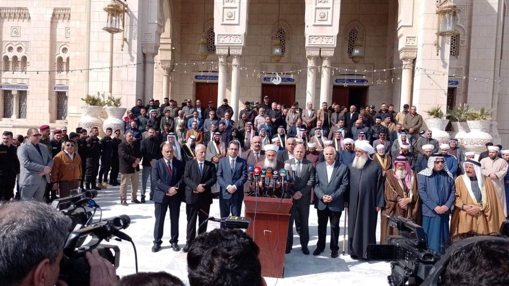 ايها الاخوة الحضور.. في هذا التجمع والوقفة المباركة لنصرة شعبنا في سوريا ضد الاعتداء الاثم للكيان الصهيوني الذي قام به وقتله الابرياء وخرق سيادة دولة عربية مسلمة في وقت عصيب تمر به بعد الزلزال وقيام الدول بالوقوف موقفا انسانيا اتجاه تقليل الكارثة.