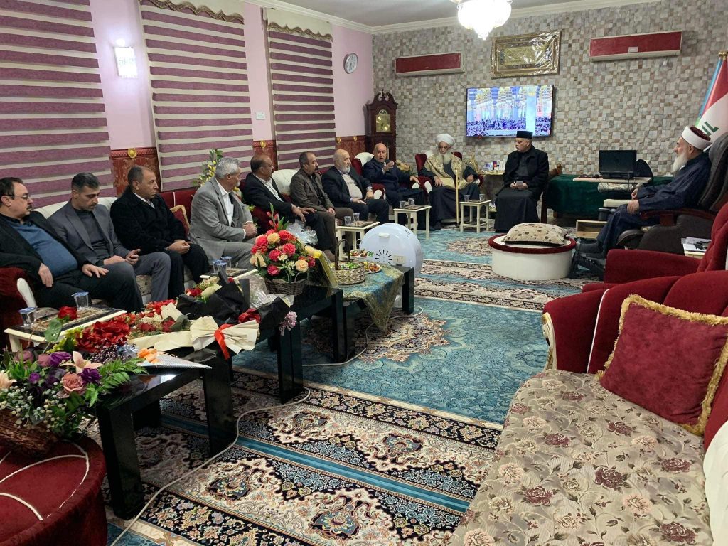التقى سماحة مفتي الجمهورية الشيخ الدكتور مهدي بن احمد الصميدعي ” رعاه الله تعالى ” في محل اقامته ببغداد صباح اليوم السبت وفد من الطائفة الايزيدية برئاسة أستاذ أحمد الربيعي رئيس مؤسسة أنوار الوطن للتعايش السلمي وكانت الزيارة لمناشدة سماحة المفتي ” وفقه الله تعالى ” في اعادتهم لمناطقهم بعد العمليات الارهابية التي تعرضت لها مدينة الموصل من قتل وظلم واضطهاد هذا واوعز سماحته بمساعدتهم واتخاذ ما يلزم شاكرين سماحته على سماعهم ومساعدته اياهم متمنين له دوام الصحة والعافية