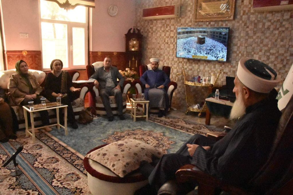 التقى سماحة مفتي الجمهورية ” وفقه الله تعالى ” في مقر اقامته ببغداد وفد منظمة احباب التقي لرعاية المراة والطفل برئاسة السيد ليث عبد الجبار شلال وتألف الوفد من الست حنان محمد عباس والست هدية جبار طارش ووفد مؤسسة التميز التعليمي لذوي احتياجات الخاصه برئاسة رئيسها الست فارعه الجوراني ووفد منظمة الهدير لرعايه الأيتام برئاسة رئيسها الست هدير حسن الجنابي والوفد المرافق ووفد مؤسسة ابراج الانسانيه للتنمية برئاسة رئيسها الدكتور جاسم عبد علي وكانت الزيارة للتواصل مع دار الافتاء العراقية وعلى رأسها سماحة المفتي ” وفقه الله تعالى ” راجين من سماحته ايصال صوتهم الى الجهات الحكومية لتوفير المستلزمات الى المنظمات ودعمها بشكل اوسع لتقديم الخدمة الازمة الى المجتمع العراقي والاستمرار في دعم الايتام والارامل ، من جانبه شكر سماحته الوفد على سعيهم في خدمة ابناء الوطن ودعمهم في جميع الطبقات المحتاجة كما واوعز سمحته بالمساعدة الممكنة داعيا الله ان يوفقهم في عملهم والاستمرار في تقديم يد العون لابناء وطنهم ، هذا وشكر الوفد سماحة المفتي على حسن الاستقبال والاستماع اليهم داعين الله ان يحفظه ويرزقه ويمن عليه بنعمة الصحة والعافية.