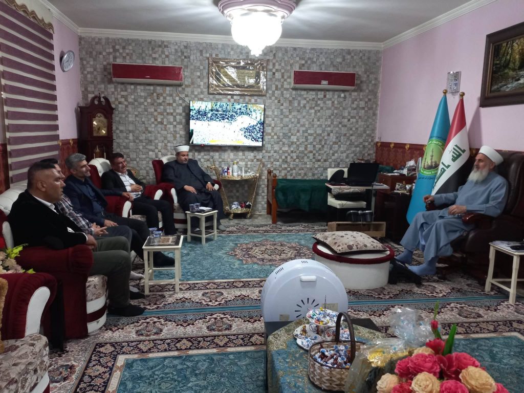 استقبل سماحة مفتي جمهورية العراق الشيخ الدكتور مهدي بن احمد الصميدعي ( وفقه الله تعالى ) في محل سكناه وفد مركز حلبجة لتعليم القرآن الكريم .. برئاسة المحامي المستشار السيد علي عبد الله أحمد والاستاذ ستار أنور والاستاذ عدنان فارس والاستاذ آراس أحمد حمد كانت الزيارة السلام على سماحة المفتي وبيان نشاطات مركز القرآن الكريم وعنايته والتزامه بطلاب القرآن الكريم وطلب من سماحته دعمه لهذا المشروع الكبير من جانبه شكر سماحته الوفد متعهدا بالتواصل مع المركز من قبل مكتب الارشاد في دار الافتاء العراقية .. شكر الوفد سماحته سائلين الله تعالى له السلامة والصحة والأمان .