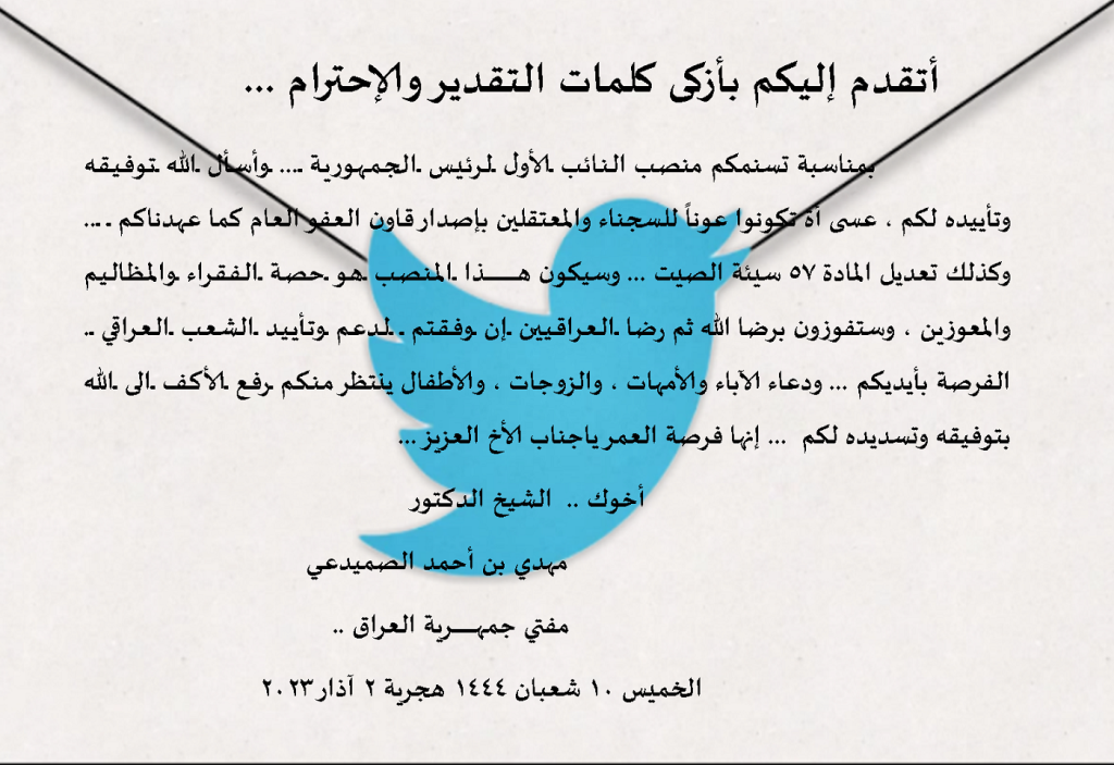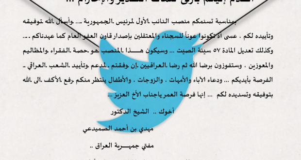 مفتي الجمهورية يهنيء السيد المالكي بتوليه منصب نائب رئيس الجمهورية ..