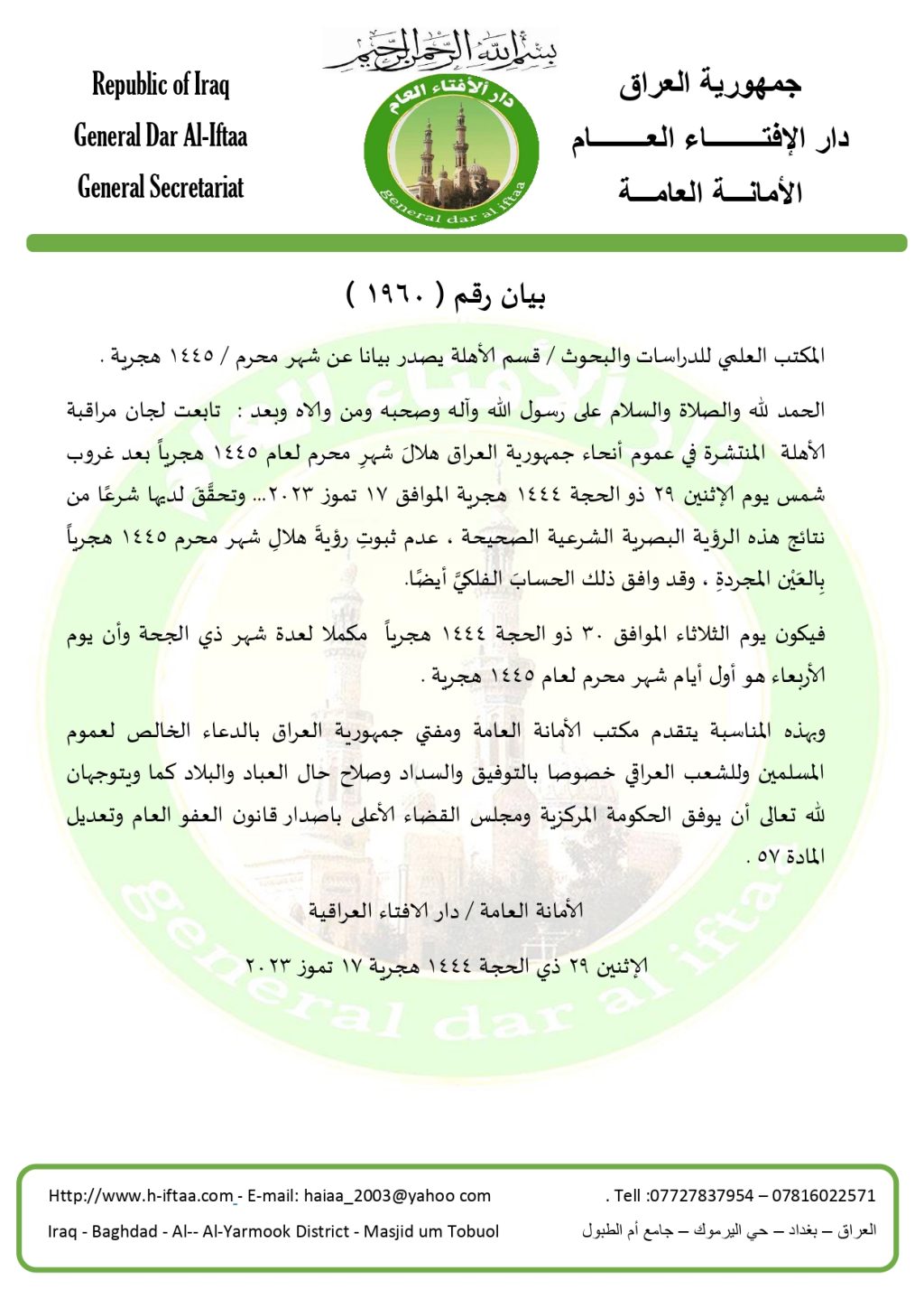 بيان رقم ( 1960 ) هلال شهر محرم 1445 هجرية .. نشرت بواسطة: admin في قسم البيانات يوليو 18, 2023 التعليقات على بيان رقم ( 1960 ) هلال شهر محرم 1445 هجرية .. مغلقة 108 زيارة 2023-07-18 admin tweet