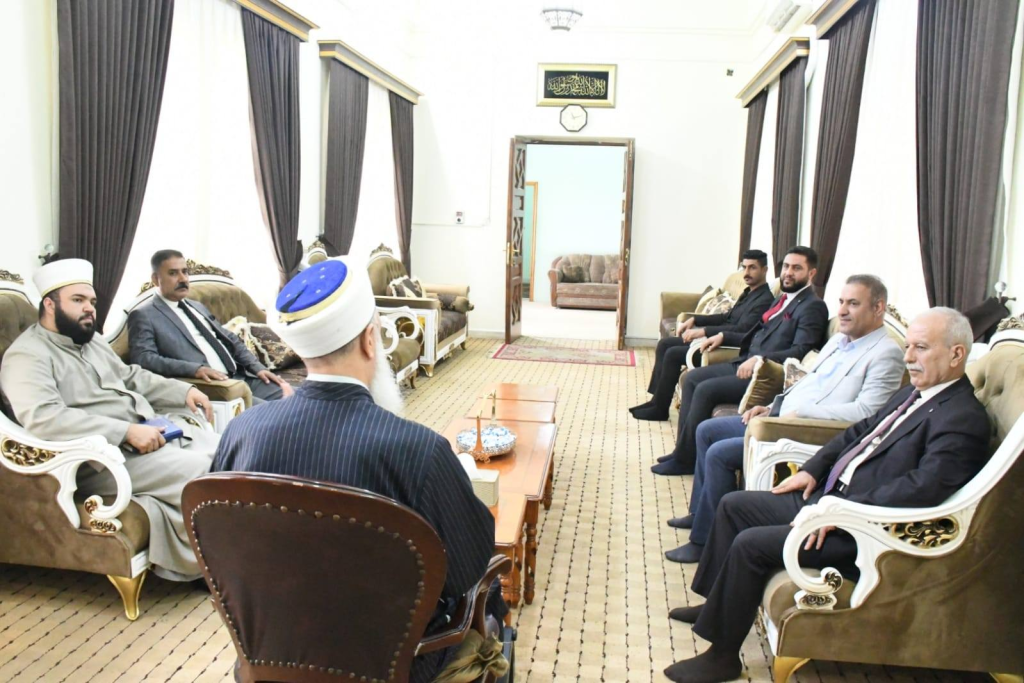 استقبل سماحة مفتي جمهورية العراق الشيخ الدكتور مهدي بن أحمدج الصميدعي ( وفقه الله تعالى ) وفد حزب الايثار برئاسة رئيس الحزب الشيخ أحمد المشهداني والدكتور أحمد الخفاجي والشيخ الدكتور ضياء العكيدي والدكتور أحمد ناصر العكيلي … كانت الزيارة السلام على سماحة مفتي الجمهورية وبيان نشاط الحزب لمرحلة انتخابات مجالس المحافظات حيث أكد سماحته سيكون دعمنا وجميع أعضاء وأتباع وأحباب دار الافتاء للمشروع الاسلامي الوطني .