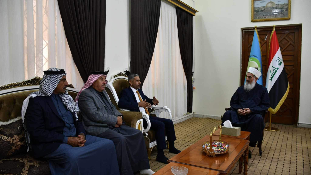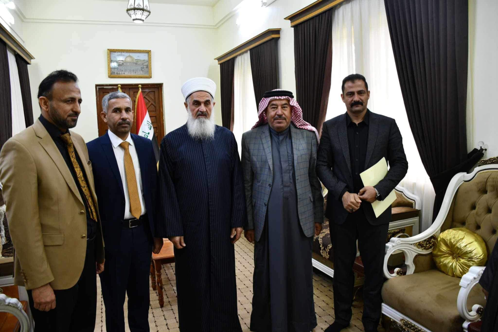 التقى سماحة مفتي الجمهورية “وفقه الله تعالى ” في مكتبه بدار الافتاء العراقية وفد تألف من الحاج علي حسين العبيدي والمهندس مثنى الدليمي والحاج خلف محمد العزاوي ونقيب عثمان بديوي الدليمي والشيخ سعد جبار عثمان الدليمي وكانت الزيارة لعرض مضلمتهم على سماحة المفتي التي تهم أراضيهم ومحل سكنهم راجين سماحته مساعدتهم بإيصال مناشدتهم إلى اصحاب القرار ، من جانبه اوعز سماحته بإتاخذ ما يلزم .
