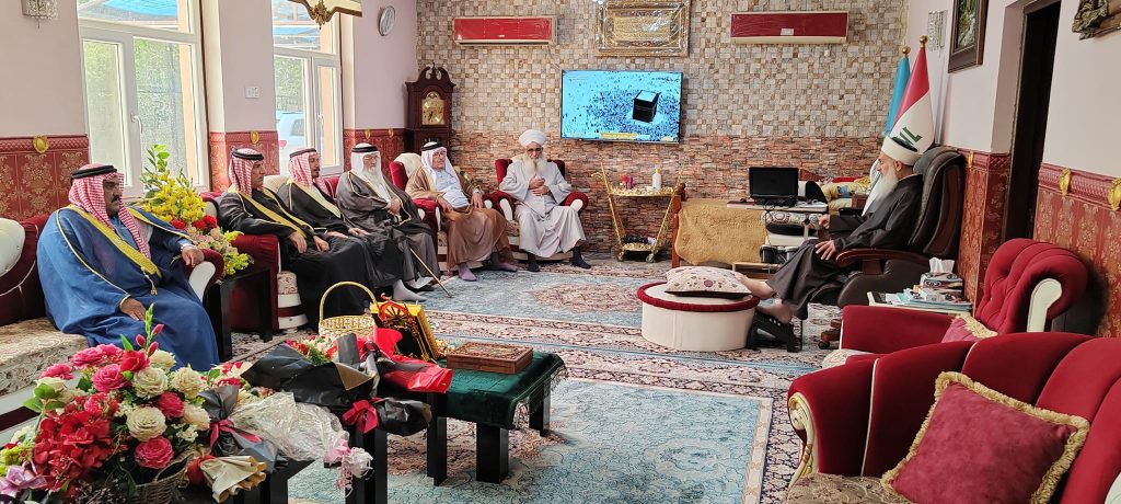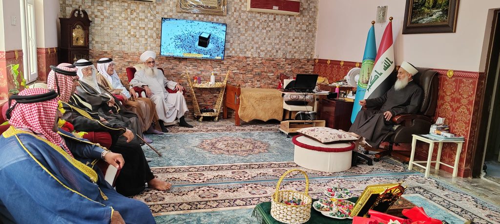 إلتقى سماحة مفتي الجمهورية الشيخ الدكتور مهدي بن أحمد الصميدعي ( وفقه الله تعالى) في بيته لجنة حكماء العراق برئاسة رئيسها الشيخ عيد العسافي ونائبه، الشيخ حميد العرسان ومسؤول التوجيه، العقائدي في اللجنة الشيخ عامر البياتي وعددا من أعضاء اللجنة… كانت الزيارة السلام على سماحة مفتي الجمهورية ومطالبته بعقد مؤتمر كبير يجمع الأكثر من أبناء المحافظات الغربية لتسجيل موقف موحد ضد التطبيع والأقلمة وأن لدينا مرجعية كفوءة وصاحبة مواقف كبيرة متمثلة بشخص مفتي جمهورية العراق ، وحدت صف المسلمين وغير المسلمين في العراق… شكر سماحته الضيوف الكرام على تواصلهم ومتابعتهم لدار الافتاء داعيا الله أن يحفظهم وعوائلهم الكريمة.