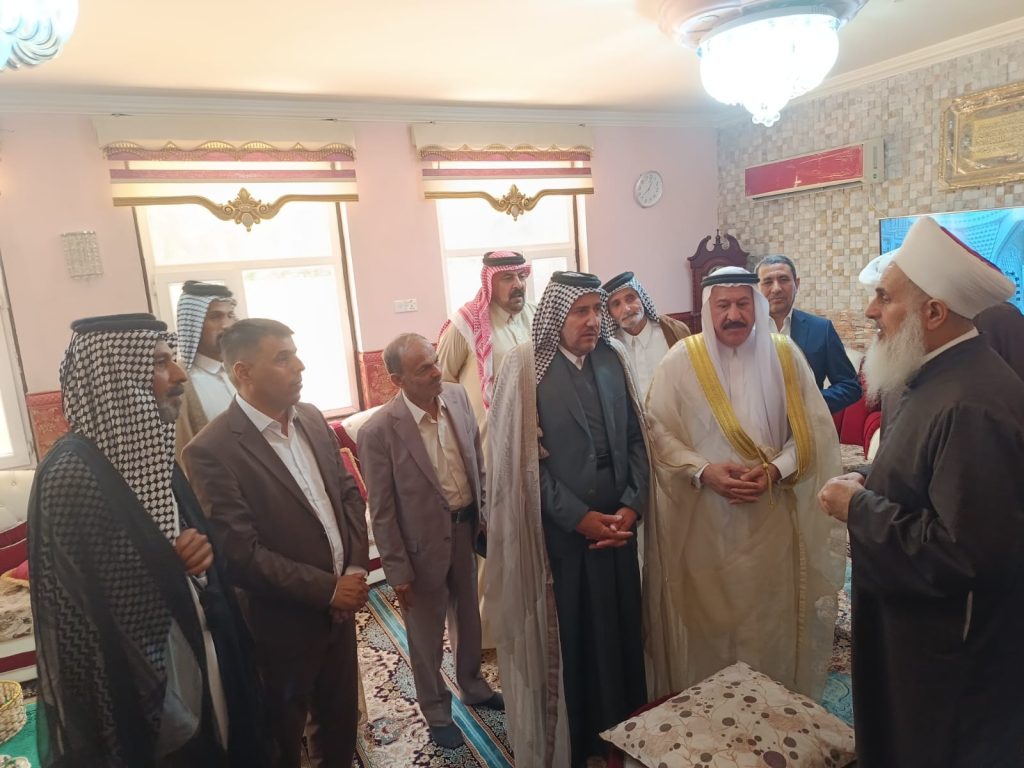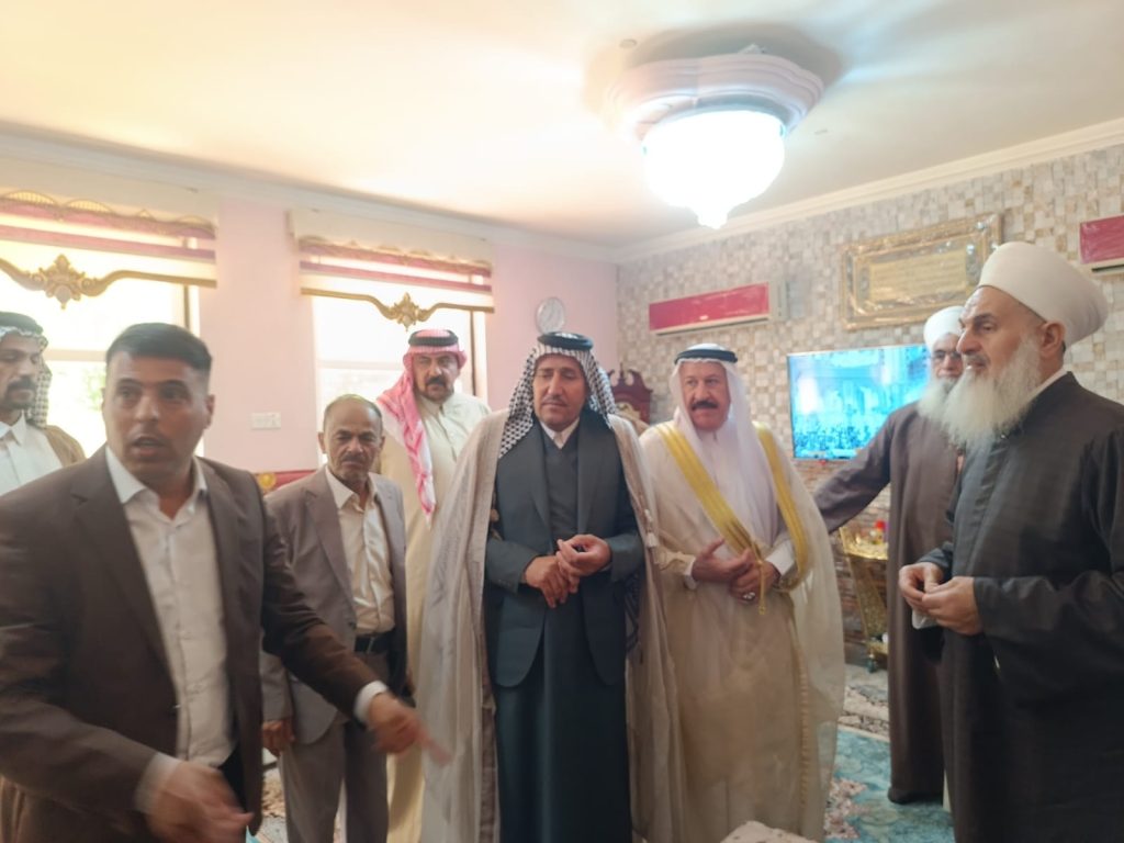 مفتي الجمهورية يلتقي في بيته وسط العاصمة العراقية بغداد وفدا من قبيلة آل شبلي والشيخ علي البرهان شيخ قبيلة العزة… كانت الزيارة السلام على سماحة مفتي الجمهورية وطرح موضوع خلاف اجتماعي… راجين من سماحته التدخل لانهاء المشكلة بالشيء الذي يرضي الله ولا يسبب اضرارا بالآخرين… من جانبه أكد سماحته أنه يدعم كل خطوة تقرب وجهات النظر..