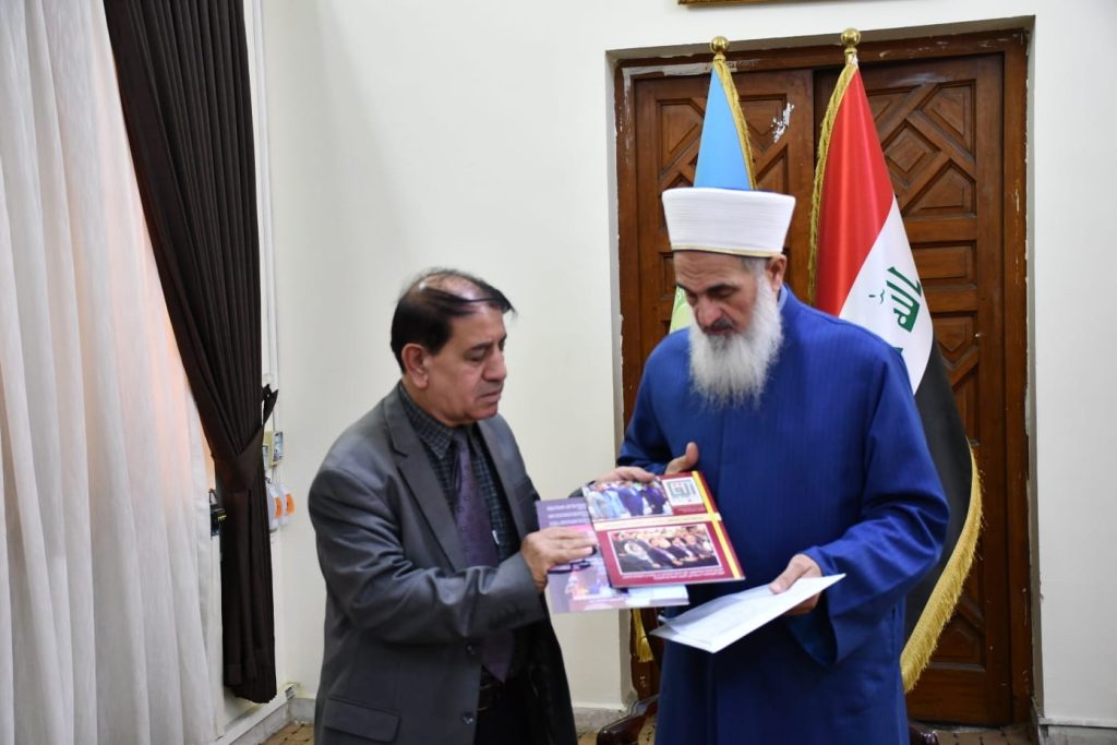 كانت الزيارة السلام على سماحة مفتي الجمهورية والاطمئنان على صحته والتواصل مع سماحته ودار الافتاء العراقية.