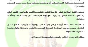 بمناسبة إسناد منصب مفتي عام المملكة العربية السعودية إلى سماحة الشيخ العلامة صالح بن فوزان الفوزان.