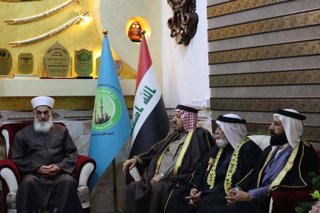 كما أن سماحة مفتي الجمهورية استقبل وفدًا من مجلس عشائر بغداد المستقل، ضم الشيخ فلاح الحسن الجبوري، أمين عام المجلس، والشيخ عدنان خضير الجبوري، رئيس المواكب الحسينية في مجلس عشائر بغداد، والوفد المرافق لهم.