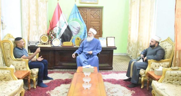 مفتي الجمهورية يستقبل في محل سكناه السيد نزار إبراهيم البندر الشيخ العام الإمارة السادة الصميدع في العراق والسيد محمد ظاهر شيخ فخذ البو ظاهر امارة السادة الصميدع… كانت الزيارة تهنئة سماحته بعيد الأضحى المبارك ومتابعة موقف السيد محمد النهر… شكر سماحته الضيف الكريم داعيا الله تعالى أن يدفع عنهم وعن ...