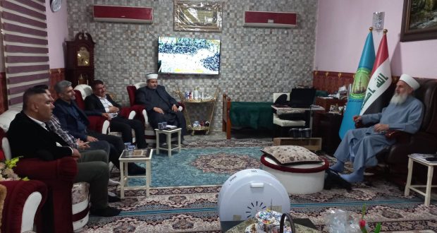 مفتي الجمهورية الشيخ الدكتور مهدي بن احمد الصميدعي ( وفقه الله ) يستقبل في محل سكناه وفد مركز حلبجة لتعليم القرآن الكريم ..