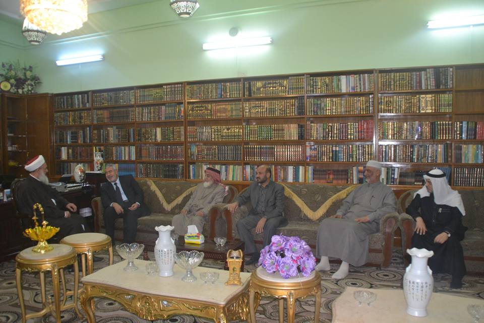 سماحة المفتي العام اعزه الله يلتقي الشيخ وليد الفراجي والشيخ جمعة وبعد ان رحب سماحته بالضيوف الكرام اثنى الضيف الزائر على دور المفتي العام ومحاربته دعاة الفتنة ومواقفه الثابتة من جانبه شكر المفتي العام اعزه الله الضيف الزائر ودعى الله ان يحفظ العراق اجمع وجنبنا الفتن ما ضهر منها وما ...