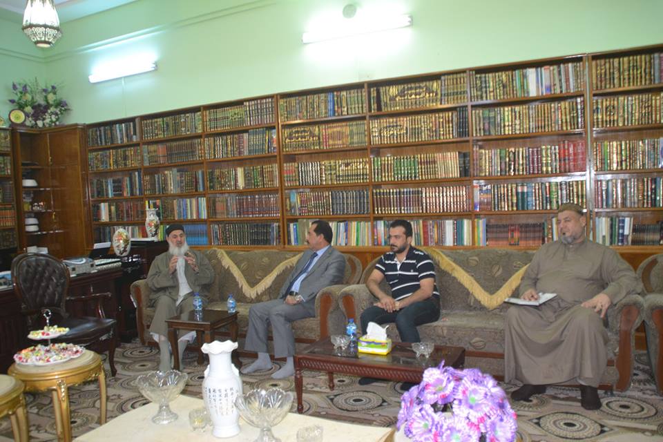 زار وفد در الافتاء العام مساء يوم الثلاثاء 3/11/2015 برئاسة الشيخ عبد الرحمن الحيالي الشيخ عبد القادر الالوسي وجرى خلال للقاء حوارا عما حيث نقل رئيس الوفد الزائر تحيات سماحة المفتي العام رعاه الله الى الشيخ الالوسي وكانت الزيارة تنص على مد الجسور للتواصل مع مشايخ الصوفية المكتب الاعلامي 3/11/2015
