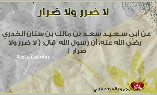 لا ضرر ولا ضرار وهذا الاصل لفظ الحديث الذي رواه الامام احمد وغيره من حديث ابن عباس . فضرار منفي شرعاً ,فلا يحل لمسلم ان يضر اخاه المسلم بقول , او فعل , او سبب بغير حق , سواء كان له في ذلك ...