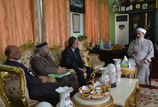 سماحة المفتي ( رعاه الله ) يلتقي الشيخ جلال الزيباري رئيس مجلس اتحاد شيوخ عشائر نينوى والشيخ مجاهد محمد ناطق امام وخطيب جامع توكلنا على الله في محافظة نينوى وجرى خلال اللقاء مناقشة الاوضاع التي تشهدها المحافظة كما طالب الحضور من سماحته دعمه الابوي ورعايته لهم باعتباره المرجع لاهل السنة ...