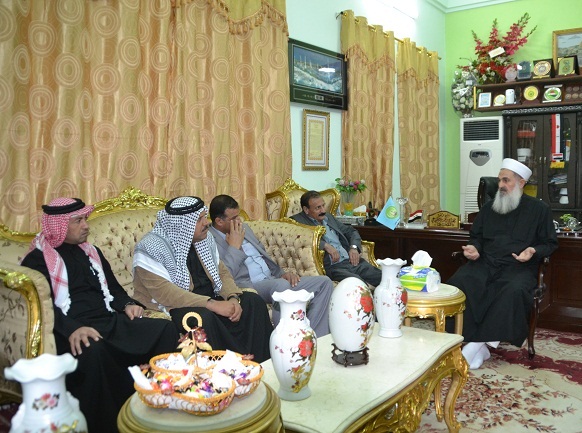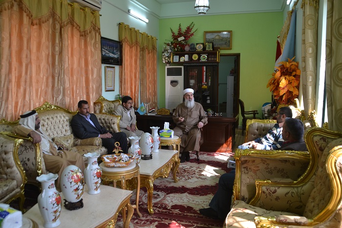 التقى سماحة المفتي ( رعاه الله ) اليوم الثلاثاء المصادف 25/12/2014 الشيخ ناهض كريم الجحيشي والوفد المرافق له من منطقة الصويرة في محافظة واسط .وجرى خلال مناقشة بعض الامور الشخصية المتعلقة بالوفد , كما اثنى الوفد الزائر على مبادرة سماحة المفتي بالجهود المبذولة لما فيه الخير خدمة لبلدنا العزيز .