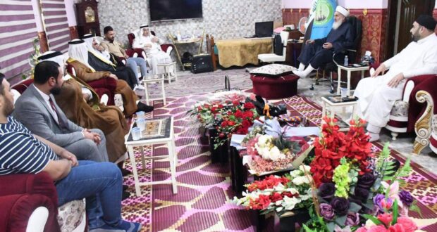 استقبل سماحة مفتي الجمهورية الشيخ الدكتور مهدي الصميدعي ” رعاه الله تعالى ” مساء اليوم السبت وفد عشيرة الحلابسة تألف من الشيخ باسم هادي شحاذه الحلبوسي والشيخ والسيد محمد صالح شحاذه والشيخ علاء خميس شحاذه الحلبوسي والاستاذ حميد الحلبوسي مسؤول مكتب العلاقات دار الافتاء فرع الفلوجة والشيخ قتيبة العنزي مدير ...