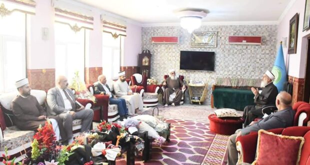 استقبل سماحة مفتي جمهورية العراق في محل اقامته ببغداد صباح اليوم السبت وفد برئاسة الشيخ حيدر التميمي .. .. كانت الزيارة السلام والاطمئنان على صحة سماحة المفتي وبحث الوفد ما يخص المساجد وكيفية ارتقاء المنبر وما يتوجب على الخطيب من توجيه الرسائل التي تبث روح التعاون والتسامح بين مكونات المجتمع ...