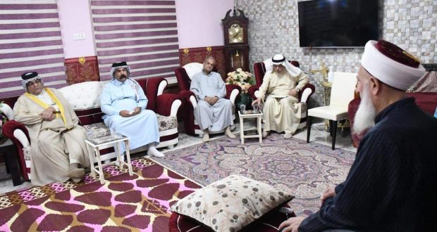استقبل سماحة مفتي جمهورية العراق في محل اقامته ببغداد مساء اليوم السبت وفد عشيرة البوعلوان تألف الوفد من الشيخ حسين علي والشيخ انور اسعد والشيخ سليمان والسيد مروان والسيد صدام والشيخ محمد لطوفي والشيخ ثامر والسيد سعد…. كانت الزيارة السلام والاطمئنان على صحة سماحة المفتي بعد عودته من سفرة العلاج… ...