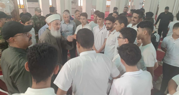 مفتي الجمهورية بعد صلاة الظهر في جامع أم الطبول مقر دار الافتاء العراقية يقدم نصيحة للشباب المصلي أشكروا الله تعالى على توفيقه لكم فأنتم الآن ضيوف الرحمن في بيته تؤدون حقه عليكم وغيركم الله أعلم ماذا يفعلون ، فهذه نعمة تحتاج الى شكر والله تعالى قال ( وإذ تأذن ربكم ...