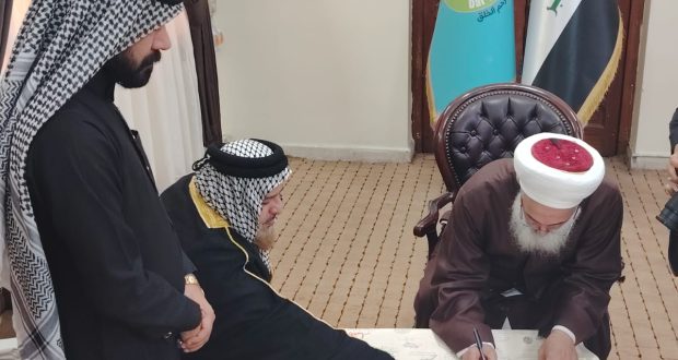 مفتي الجمهورية يستقبل متبني وثيقة الشرف العراقية الموحدة من الفاو الى زاخوا _ لمكافحة المخدرات والإبتزاز الالكتروني _ الشيخ حيدر العبادة ومدير مكتب الهيئة العليا لأنساب آل البيت الرفاعية السيد مهند النعيمي _ طلب السيد مسؤول الوثيقة تصديقها من قبل مفتي الجمهورية وأنه صدقها من جميع الرموز العراقية الدينية والوطنية ...