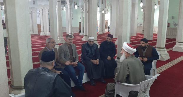 سماحة مفتي الجمهورية ” رعاه الله “يلتقي وفد برئاسة امام جامع النذير البشير .التقى سماحة مفتي جمهورية العراق الشيخ الدكتور مهدي بن احمد الصميدعي ” رعاه الله تعالى ” في مكتبه بدار الافتاء العراقية صباح اليوم الاحد الشيخ حاتم الفضلي امام جامع النذير البشير /الشعب برفقه الحاج مزهر العامري والحاج ...