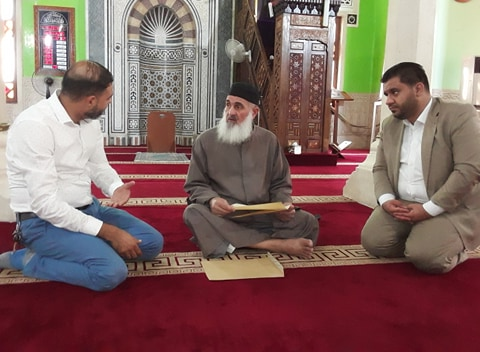 وفد المدرسة الخالصية من سماحة آية الله العلامة الشيخ جواد الخالصي .. يقدمون بعد صلاة العصر في حرم جامع ام الطبول وسط العاصمة العراقية _ تهنئة لسماحة مفتي الجمهورية بمناسبة عيد الأضحى المبارك . المكتب الاعلامي / دار الافتاء العراقية الأربعاء 13 ذي الحجة 1440 هجرية 14 آب 2019