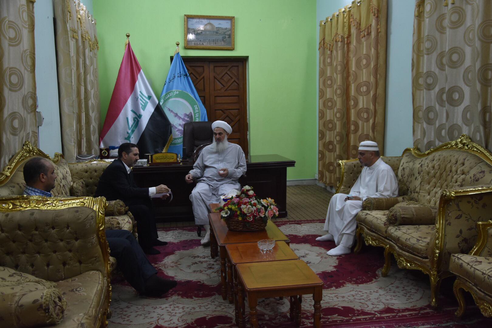 سماحة مفتي الجمهورية ” رعاه الله” يلتقي وفد برئاسة امام وخطيب جامع عمر المختار.التقى سماحة مفتي جمهورية العراق الشيخ الدكتور مهدي الصميدعي ( وفقه الله تعالى ) في مكتبه بدار الافتاء العراقية وفد برئاسة الشيخ الدكتور عداي الغريري أمام وخطيب جامع عمر المختار والدكتور احمد غالب السعدون ومعاون عميد كلية ...