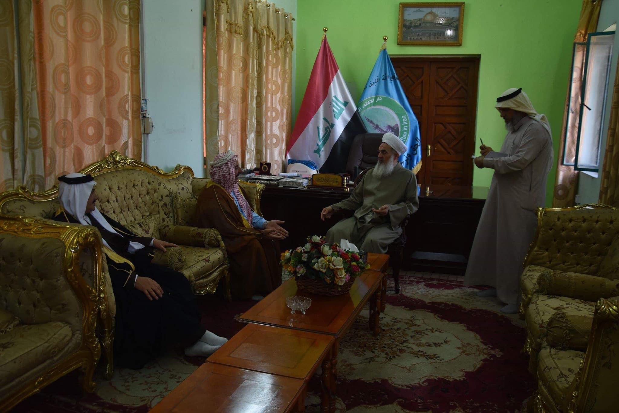 سماحة مفتي الجمهورية يلتقي الشيخ مهدي شعيب ابراهيم ابو صلاح والسيد عثمان عباس ، من منطقة البصام قضاء أبي غريب كانت الزيارة لمتابعة أمور جامع السلام والمنطقة وتركيز سماحته في المحافظة على هوية المساجد واداء دور الدعوة التي تحافظ على ذمم أهل الاسلام .. المكتب الاعلامي / دار الافتاء العراقية ...