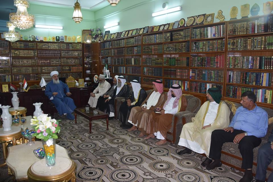 عاجل _ وفود من شيوخ العشائر تتوافد على دار الافتاء لدعم بيان سماحة المفتي ( أعزه الله ) . سماحة مفتي جمهورية العراق الشيخ الدكتور مهدي بن احمد الصميدعي ” حفظه الله” يستقبل مساء يوم الثلاثاء بمكتبه بدار الافتاء العراقية ، وفدا لجنة حكماء اهل العراق، لدعم المبادرة التي قدمها ...
