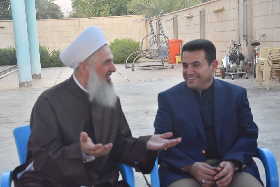 سماحة مفتي جمهورية العراق يلتقي امام وخطيب جامع عمر المختار الوفد المرافق. سماحة مفتي جمهورية العراق الشيخ الدكتور مهدي بن احمد الصميدعي الشيخ عداي الغريري امام وخطيب جامع عمر المختار في منطقة حي اليرموك والشيخ محمد عبد غني والشيخ علي موفق وتضمنت الزيارة تهنئة سماحة المفتي “سدده الله” بمناسبة هيد ...
