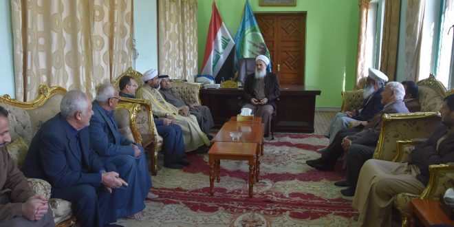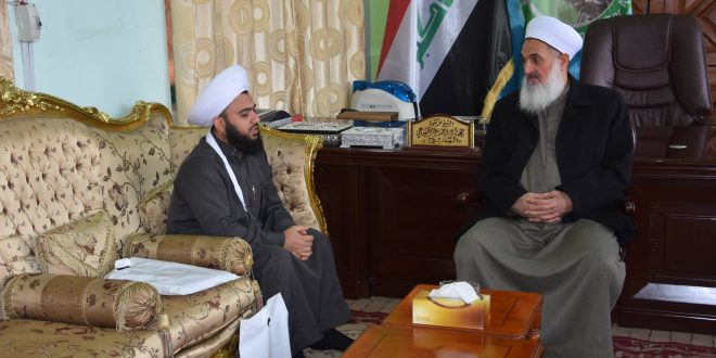 سماحة مفتي جمهورية العراق يلتقي الشيخ حيدر التميمي امام وخطيب جامع ذات النطاقين . التقى سماحة مفتي جمهورية العراق الشيخ الدكتور مهدي بن احمد الصميدعي “رعاه الله ” في مكتبه بدار الافتاء العراقية الشيخ حيدر التميمي امام وخطيب جامع ذات النطاقين في منطقة بغداد الجديدة , وكانت الزيارة في اطار التباحث ...