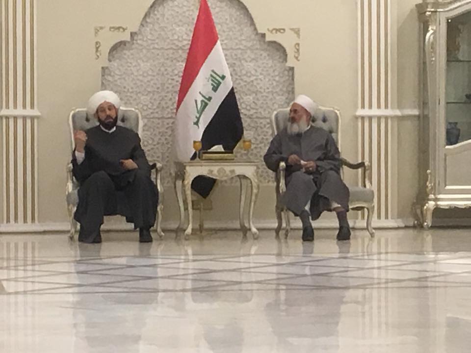 عاجل _ سماحة مفتي جمهورية العراق الشيخ الدكتور مهدي الصميدعي يستقبل في مطار بغداد الدولي سماحة مفتي الجمهورية العربية السورية الشيخ الدكتور أحمد بدر الدين حسون بزيارة خاصة موجهة من قبل وزارة الخارجية .