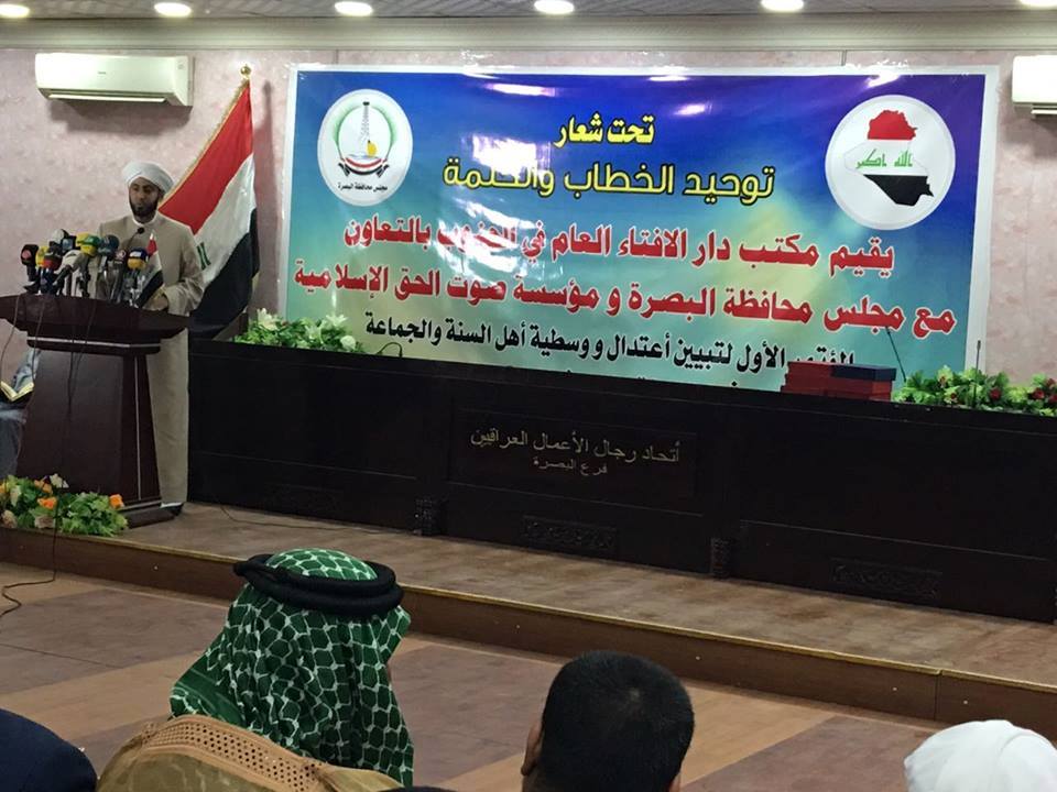 اليوم الثلاثاء 3 محرم 1438 هجرية 4 اكتوبر 2016 أقام مكتب دار الافتاء في البصرة ندوة حول وسطية واعتدال اهل السنة ، وحرصهم على التعايش السلمي وحفظهم للحقوق والحدود ، وكذلك الاشارة الى المؤتمر العام لأهل السنة في العراق الذي سيعقد في 23 محرم 1437 هجرية .. أقام مكتب دار ...