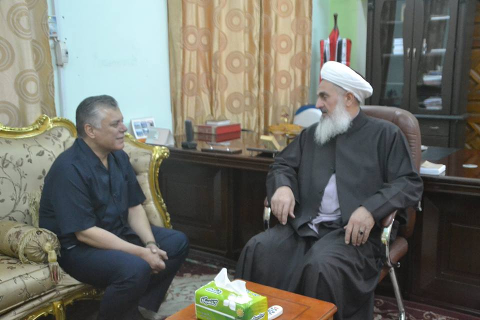 سماحة المفتي العام لأهل السنة والجماعة الشيخ الدكتور مهدي بن احمد الصميدعي رعاه الله يلتقي صباح اليوم السبت 14/5/2016 في مكتبه الخاص بدار الافتاء العام وفدالاتحاد العربي للقبائل العربية جامعة الدول العربية برئاسة الامير حسين آل علي ريئس الاتحاد والسيد سليم الحسيني والاستاذ محمد الربيعي والشيخ طلال الشمري والسيد محمد ...