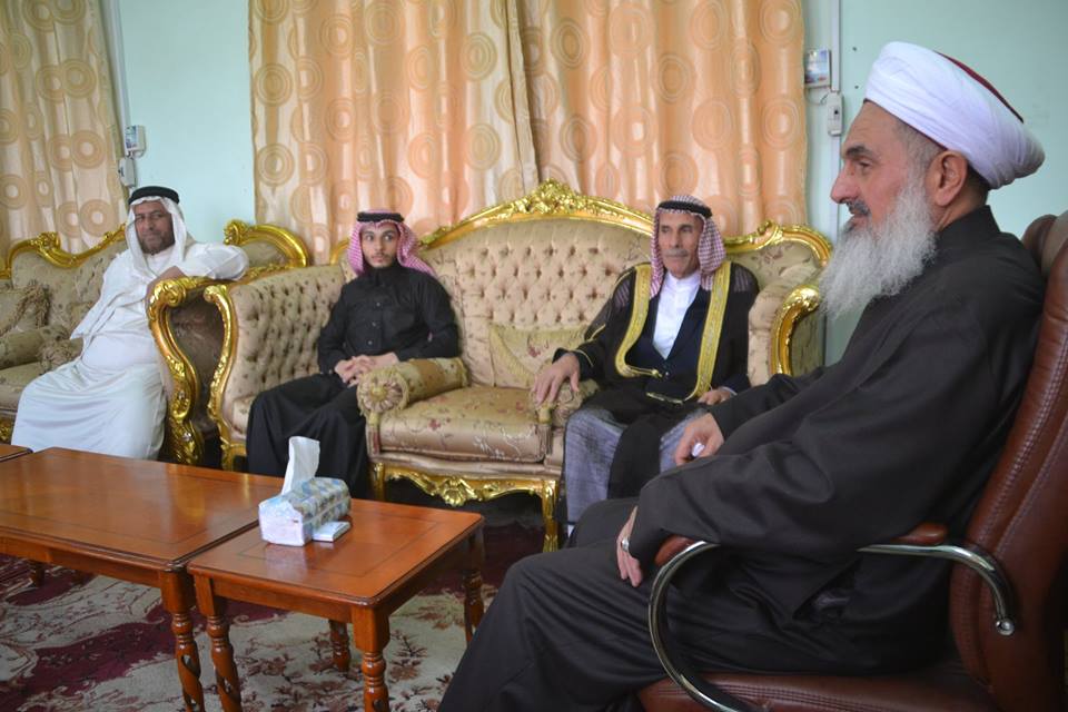 سماحة المفتي العام لأهل السنة والجماعة الشيخ الدكتور مهدي بن احمد الصميدعي (رعاه الله) يلتقي صباح اليوم الاحد 10/4/2016 في دار الافتاء العام الشيخ الدكتور نايف سعيد النايف شيخ عشيرة الملاحمة العام من عشائر الدليم وولده حسين . وجرى خلال اللقاء تبادل الحديث واعلان الضيف الكريم انضمامه وافراد عشيرته الاكارم ...