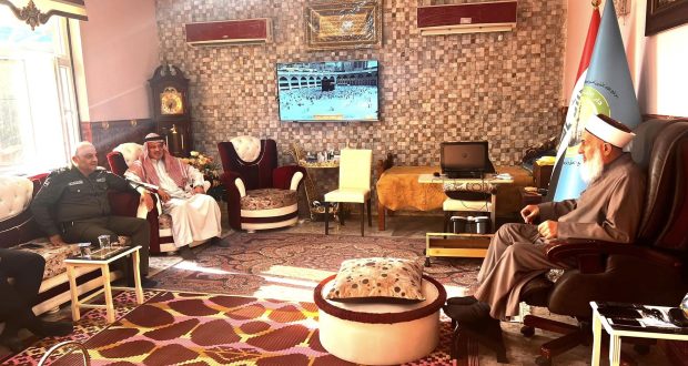 التقى سماحة مفتي الجمهورية ” وفقه الله تعالى ” في محل اقامته ببغداد صباح اليوم الخميس وفد محافظة نينوى تألف من الشيخ لؤي النعيمي والشيخ خالد الطائي والسيد علي الصميدعي والسيد علي الخزعلي وكانت الزيارة لحل مشكلة تتعلق بين عشيرتين والوقوف على مخرجات المشكلة هذا واوضح الوفد ما لديه من ...