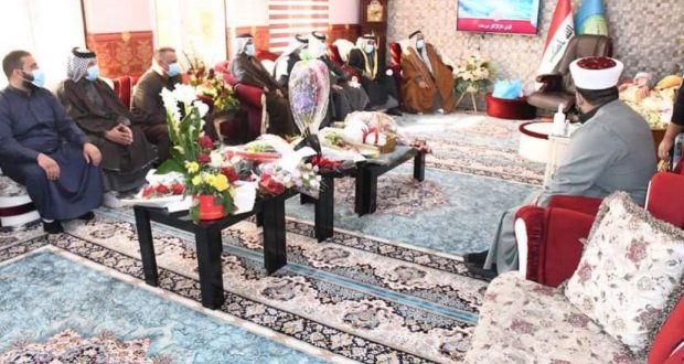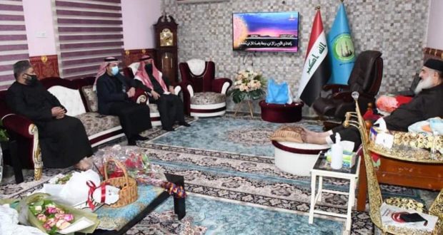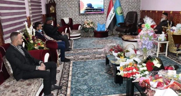 التقى سماحة مفتي جمهورية العراق الشيخ الدكتور مهدي بن احمد الصميدعي ” رعاه الله تعالى ” في محل اقامته ببغداد مساء اليوم الاثنين وفد برئاسة المقدم سفيان ومنتسبين من حماية المنشآت، وكانت الزيارة للاطمئنان على صحة سماحة المفتي ” رعاه الله تعالى” بعد خروجه من المشفى واجراءه عملية جراحية، سائلين ...