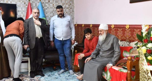 سماحة مفتي الجمهورية ” وفقه الله تعالى ” يلتقي وفد من مشايخ ووجهاء العشائر والائمة والخطباء واعضاء دار الافتاء العراقية في محل اقامته ببغداد بعد خروجه من المشفى حامدين الله تعالى على سلامته داعين الباري عز وجل ان يعينه ويلبسه ثوب الصحة والعافية .