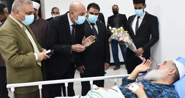 سماحة مفتي الجمهورية خلال رقوده في المشفى بعد اجراءه عملية جراحية تكللت بفضل الله تعالى بالنجاح ، يلتقي مساء اليوم الاربعاء وفد فضاء ابي غريب تألف من الشيخ نوري الفلوجي والشيخ اكرم الفلوجي مدير مكتب دار الافتاء في القضاء ذاته والسيد جاسم الفلوجي والدكتور مسلم الاسدي وكانت الزيارة للاطمئنان على ...