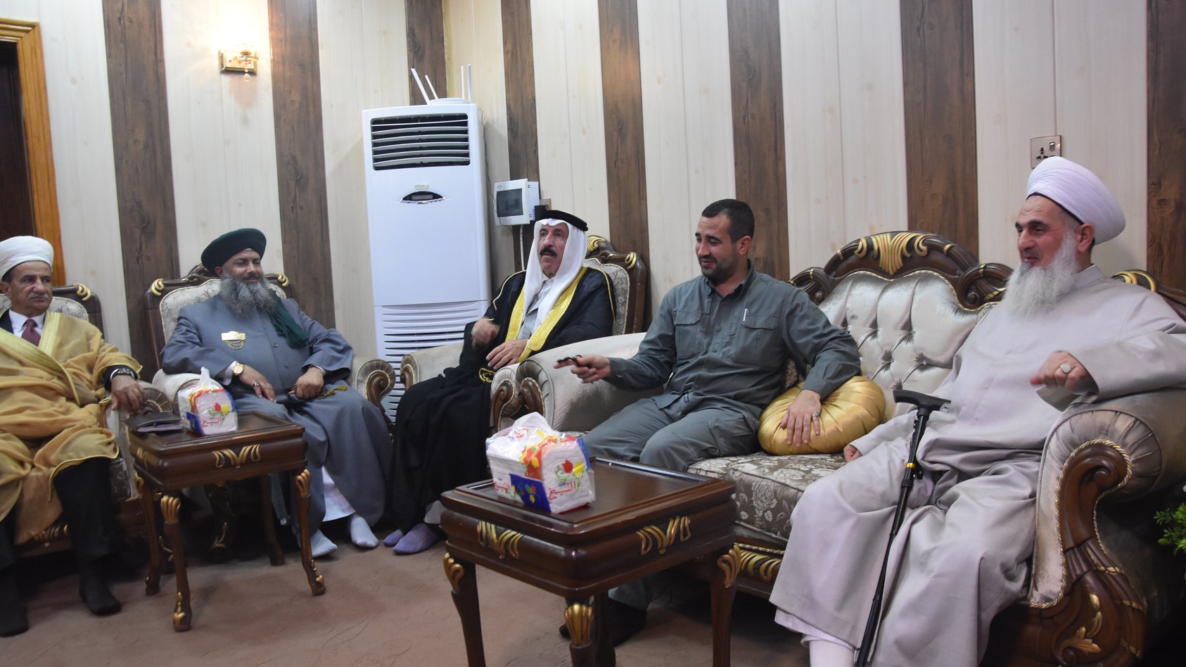 لقاء مفتي الجمهورية مع الشخصيات السياسية والعشائرية في محافظة نينوى .. خلال زيارته في شعبان 1440 هجرية آيار 2019 .الشيخ الأمير بنيان الجربا والشيخ الأمير صلاح الخالدي والشيخ الأمير العاكوب .